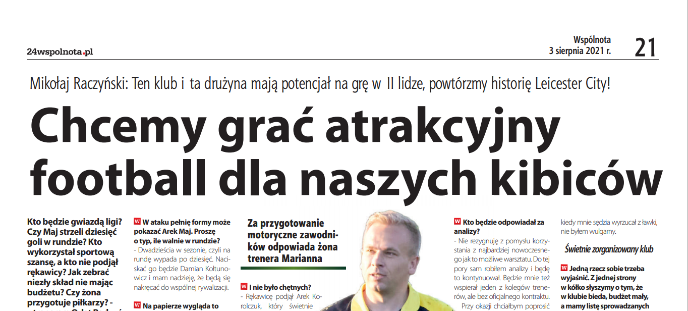 Przed nowym sezonem, w którym będę prowadził Orlęta-Spomlek Radzyń Podlaski w 3 lidze gr.IV, miałem przyjemność udzielić wywiadu lokalnej gazecie „Wspólnota Radzyńśka”. Całość możecie przeczytać pod linkiem poniżej. Zapraszam do lektury:
