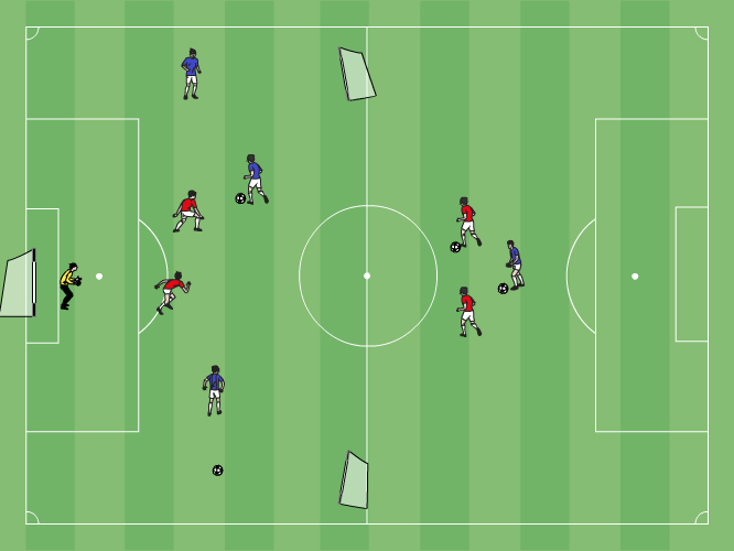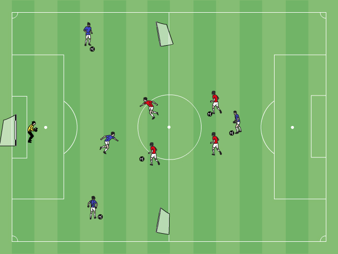 W fazie specyficznej przechodzimy do ćwiczeń mających na celu podniesienie temperatury wewnętrznej ciała oraz pozwalających osiągnąć zawodnikom swoje optymalne pobudzenie. W pierwszym etapie wykonujemy ćwiczenia techniczno-taktyczne z piłką np. podania, przyjęcia, uderzenie, dryblingi, podczas których uwzględniamy specyfikę formacji oraz pozycję zawodników. Następnie przechodzimy do małych gier np. 5:5. Czas trwania tego etapu to 10 minut. W drugiej części tej fazy wykonujemy ćwiczenia eksplozywne dzięki którym zwiększymy pobudzenie ośrodkowego układu nerwowego np. 2-3 metrowy sprint z wyhamowaniem -> wyskok do główki -> 5-8 metrowy sprint. Czas trwania tego etapu to około 3-4 minuty.