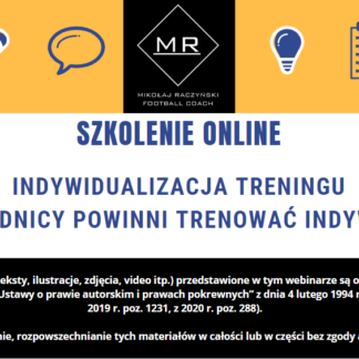Czy uważasz, że Twoi zawodnicy mają odpowiednie środowisko aby rozwijać swoje umiejętności? Czy ważny jest dla Ciebie aspekt poznawczy? W jaki sposób mogę stworzyć odpowiednie warunki treningowe, aby drużyna mogła maksymalnie rozwinąć swój potencjał? Jak alternatywnie w sposób kompleksowy wprowadzać elementy taktyczne? Odpowiedzi na te pytanie znajdziesz w moim szkoleniu online, które śledziło blisko 180 trenerów. Szkolenie zawiera: