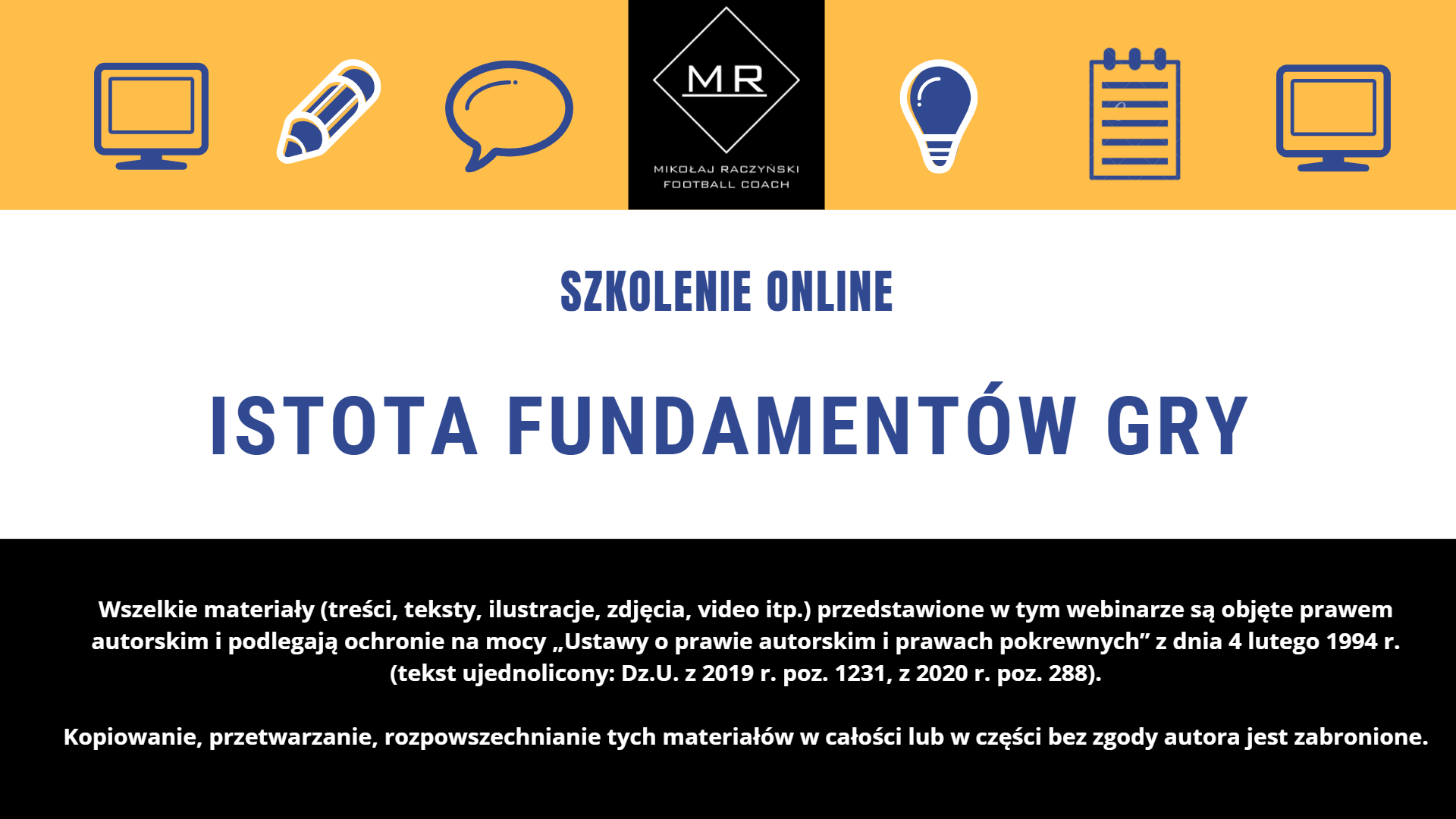 Szkolenie „Istota fundamentów gry” pomoże każdemu Trenerowi zrozumieć, dlaczego inteligencja oraz intencja taktyczna gracza są kluczowe we współczesnej piłce nożnej. W szkoleniu dowiesz się jakie jest umiejscowienie fundamentów gry, w jakich ilościach je stosować i na co zwrócić uwagę w dobieraniu ich. Podczas szkolenia zapoznasz się z analizami wideo, aby dokładnie zrozumieć omawiane fundamenty gry.