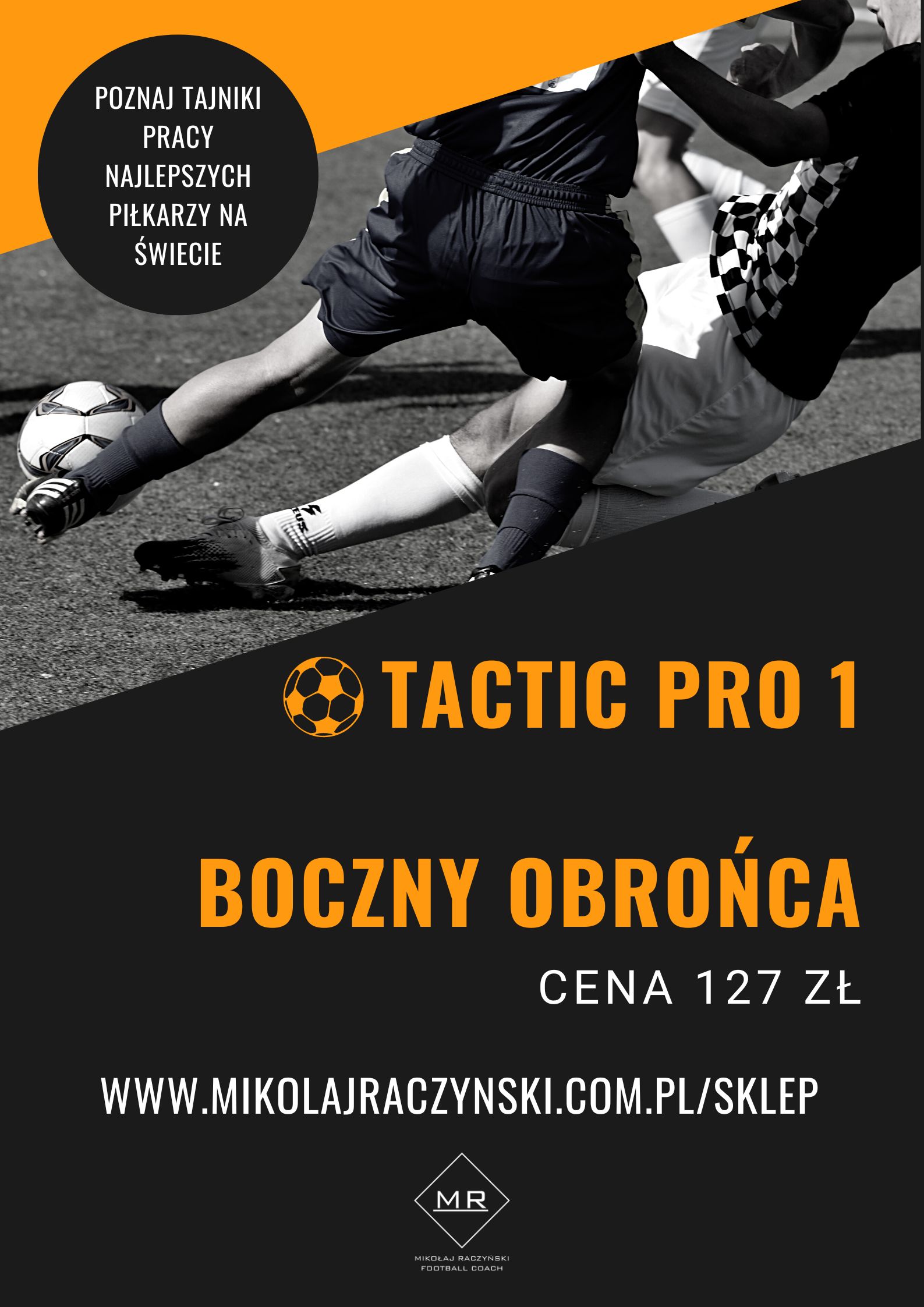 Szkolenie Tactic Pro 1 to pierwszy z trzech kursów online dla trenerów i zawodników, dzięki któremu będą mogli zgłębić tajniki taktyczne najlepszych szkoleniowców na świecie. Nagranie z kursu można włączyć w dowolnym momencie i miejscu – każdy uczestnik otrzymuje pełny zapis wideo – szkolenie nie jest live, aby każdy swobodnie dobrał termin uczestnictwa. Wiedza zdobyta podczas szkolenia jest niedostępna w żadnej literaturze o tematyce piłkarskiej. Podczas szkolenia poprowadzę krok po kroku każdego uczestnika po mapie zachowań taktycznych, objaśniając istotę każdego z nich. Każde zagadnienie jest przedstawione graficznie wraz opisem, a także klarownie objaśnione. Następnie uczestnik obejrzy analizy wideo omówionego fundamentu gry, aby w 100% zrozumieć ideę danego konceptu taktycznego. Każy uczestnik szkolenia otrzyma uniklany kod dostępu do kursu. W tej części zostaną omówione zagadnienienia bocznego obrońcy.