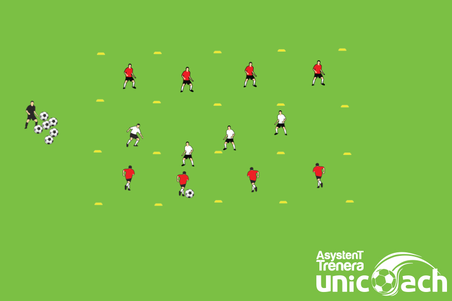 Zadaniem zawodników ofensywnych (czerwonych) jest takie rozegranie piłki między sobą, aby przetransportować ją do partnerów ustawionych po drugiej stronie. W tym czasie zawodnicy defensywni (biali) muszą odpowiednio się przesuwać i zawężać pole gry, aby uniemożliwić zagranie piłki penetrującej oraz przechwycić próbę podania.