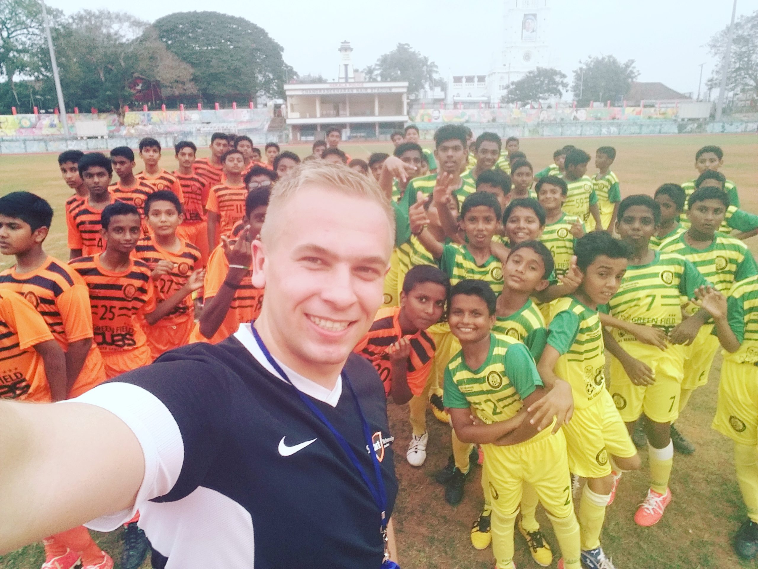 Z pewnością największym wydarzeniem był 3-dniowy camp, który zorganizowaliśmy dla zawodników. Była to pierwsza taka inicjatywa w całej Kerali. Zainteresowanie wyrazili wiodący politycy regionu oraz miejscowa telewizja, która nagrała krótkie promo z naszego pobytu. Podczas obozu w dalszym ciągu kontynuowaliśmy tematy, które realizowaliśmy na co dzień. Pracowaliśmy 2x dziennie, a ponadto mieliśmy czas, aby prowadzić z zawodnikami wykłady odnośnie treningu oraz zorganizowania zajęć rozwijających kreatywność piłkarzy. Ponadto rano zawodnicy mieli zajęcia z jogi. Ze swojej strony udało mi się nagrać krótki Manequin Challange z moją grupą, który możecie zobaczyć PONIŻEJ. Zawodnicy byli mega szczęśliwi i był to najlepszy okres w ich życiu.